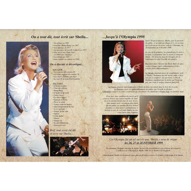 PLAN PROMO 4 pages Sheila live olympia 98 / 99 dédicacé